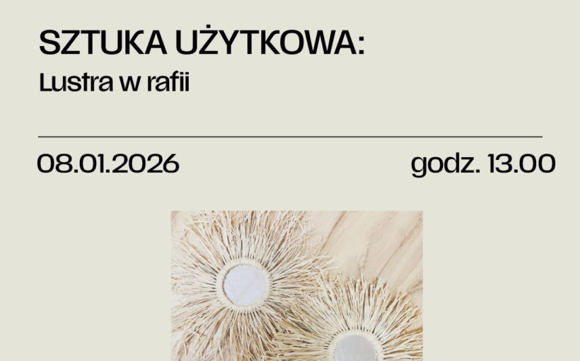 Podczas zajęć każdy Uczestnik stworzy wyjątkową ozdobę do swojego domu – lusterko otulone naturalną rafią, w klimacie boho. Instruktorka krok po kroku nauczy oplatania oraz wiązania rafii wokół okrągłej ramy, a następnie przymocujemy ją do lustra, tworząc piękną, użytkową dekorację wnętrza.