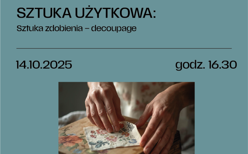 Kiedy: 14 października 2025 (wtorek), godz. 16.30 Zapraszamy na twórcze spotkanie „Sztuka zdobienia – decoupage”, podczas którego odkryjesz jedną z najpiękniejszych technik rękodzielniczych. Każdy Uczestnik ozdobi drewniane pudełko...